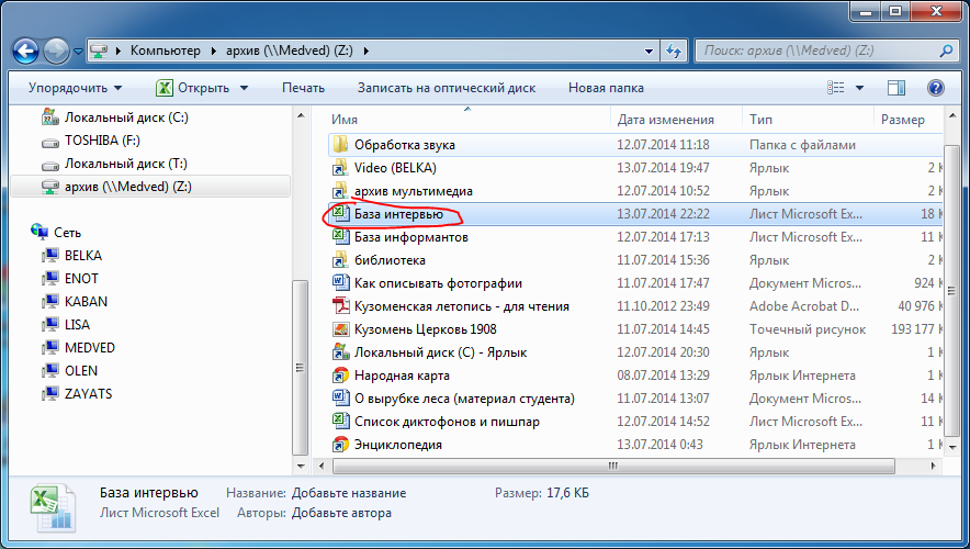 В папке описи создаём новую папку с названием из базы интервью