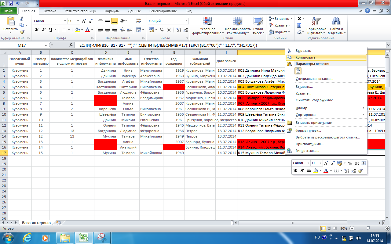 Начинаем описывать материал. В макете описи необходимо указать данные информанта и собирателей Все расшифровки, которые цитируются в энциклопедии должны присутствовать в описи с пометкой 'Расшифровка'
